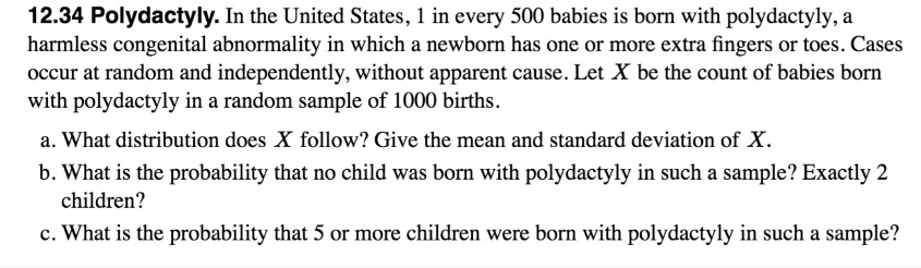 Solved 12 34 Polydactyly In The United States 1 In Every Chegg Com